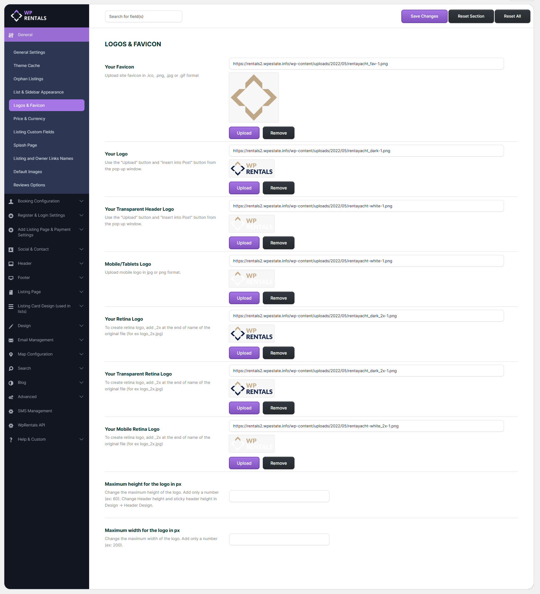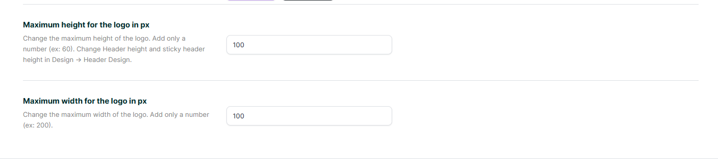 To change logo height with Custom CSS , use this css in custom css (Theme Options – Design – Custom Colors – Custom css) or in child theme style.css – https://help.wprentals.org/article/3029/