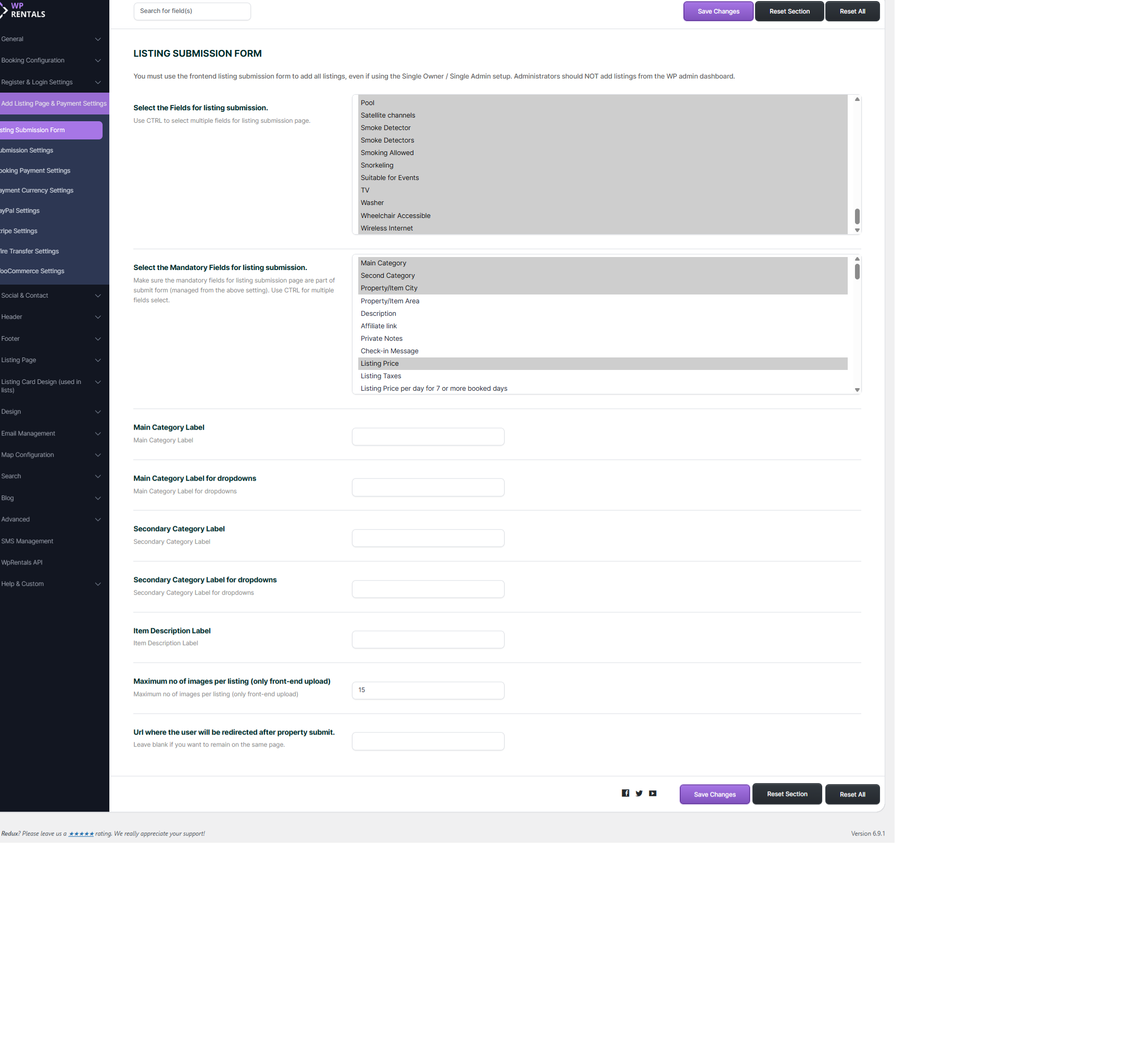 Important: If you add new custom fields or features/amenities, you must re-save the settings in Theme Options > Add Listing Page & Payment Settings > Listing Submission Form. Newly added fields may appear unchecked until you do so.