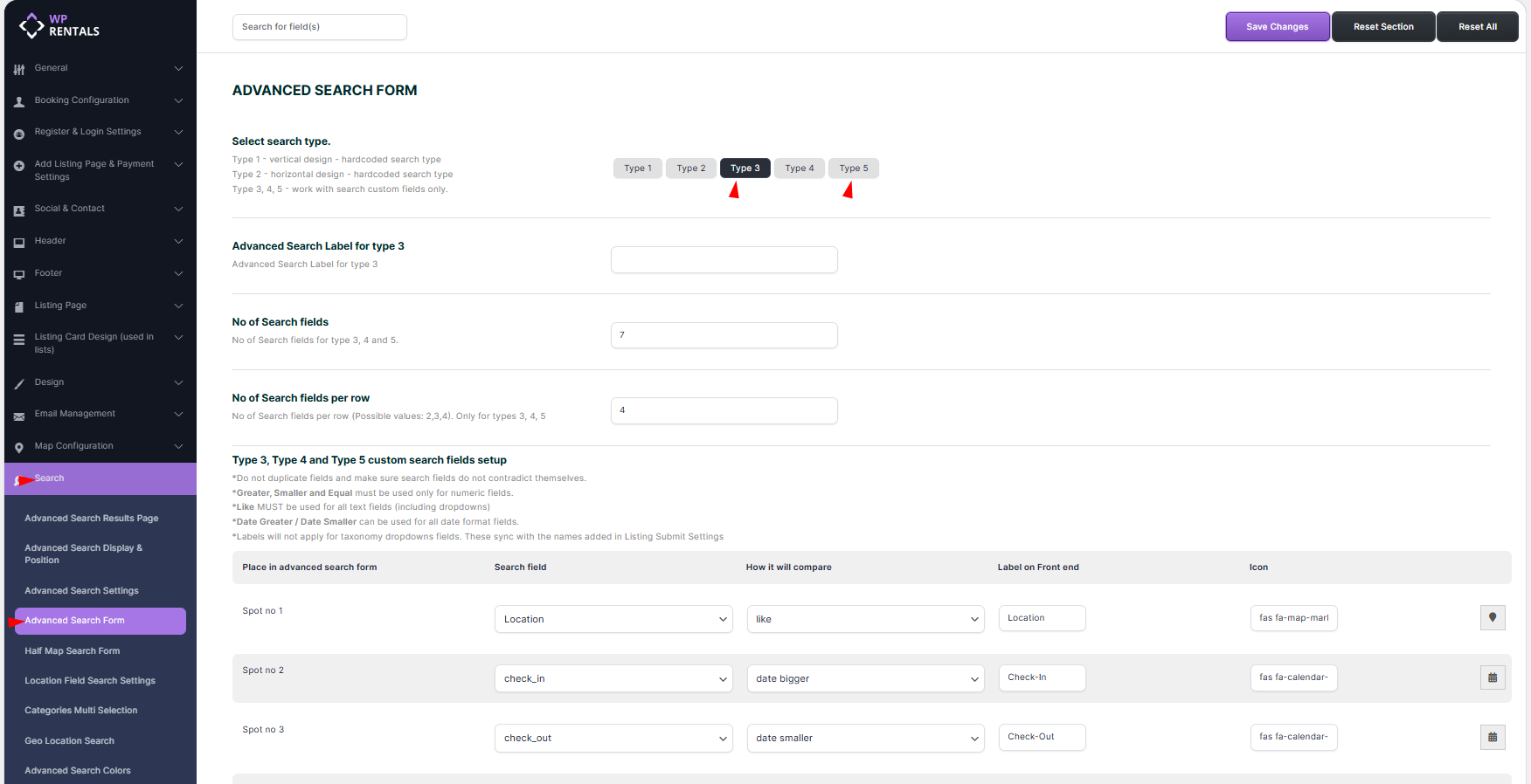 WpRentals Advanced Search Types & Forms