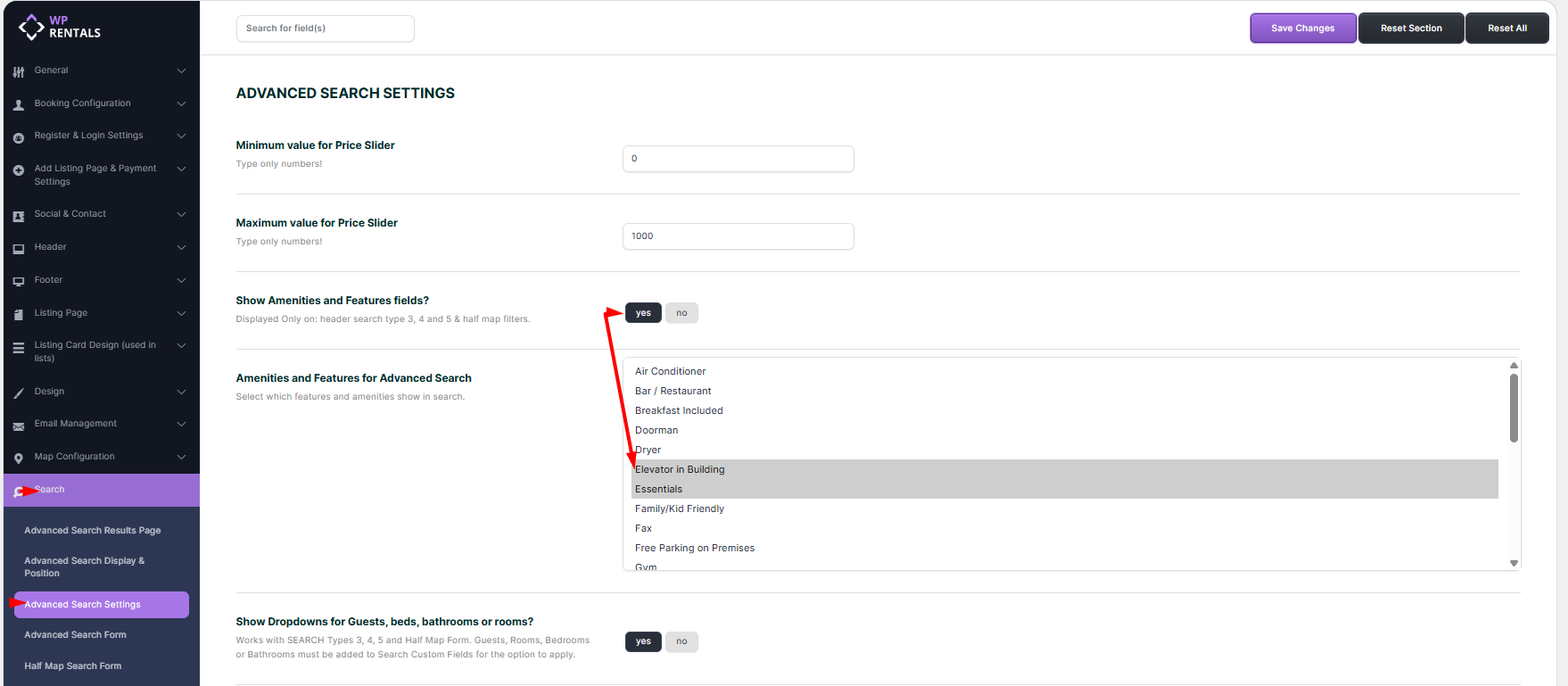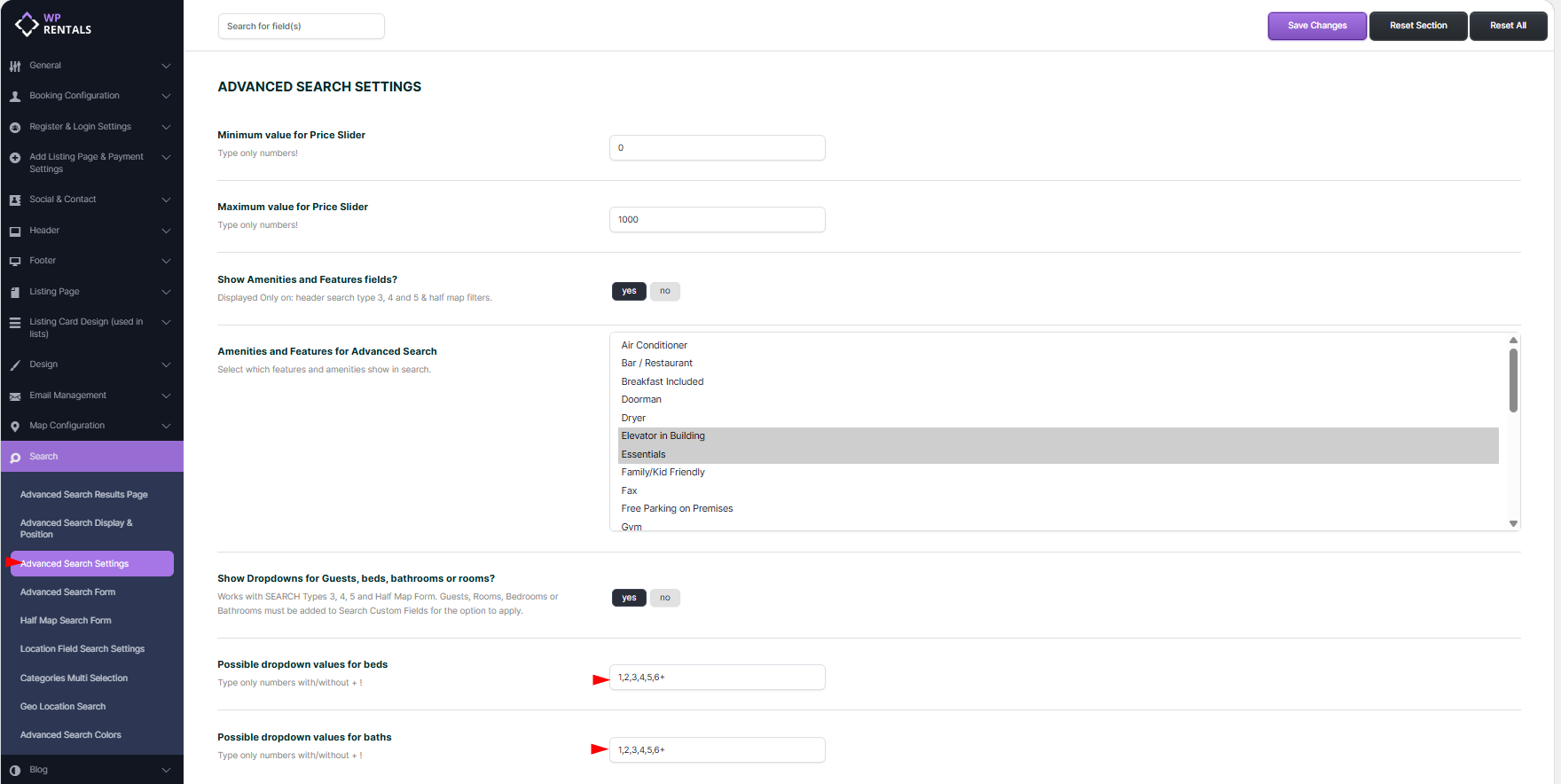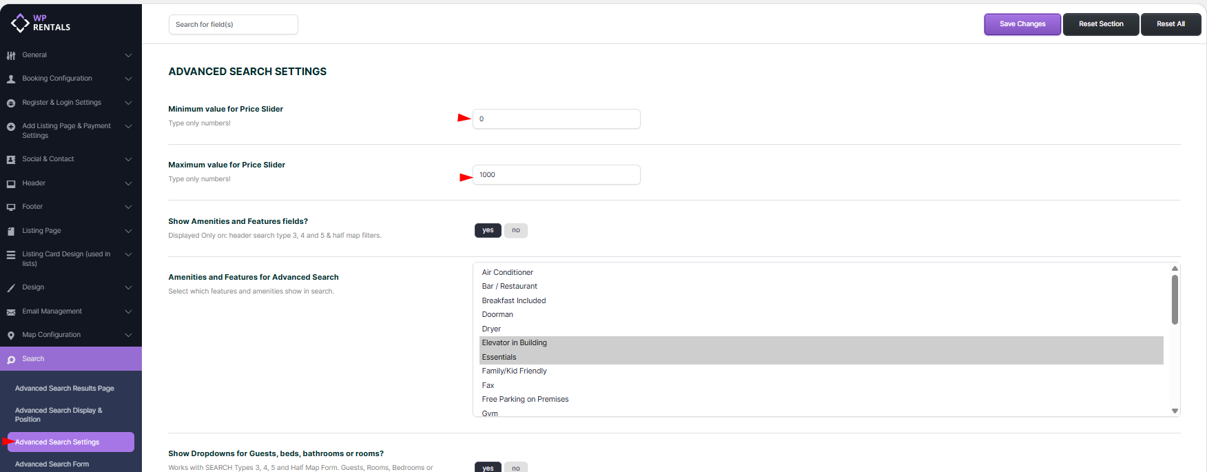 🛠 To enable dropdowns, activate “Show Dropdowns for Guests, Beds, Bathrooms, or Rooms” in Theme Options and configure the number of beds and baths to display