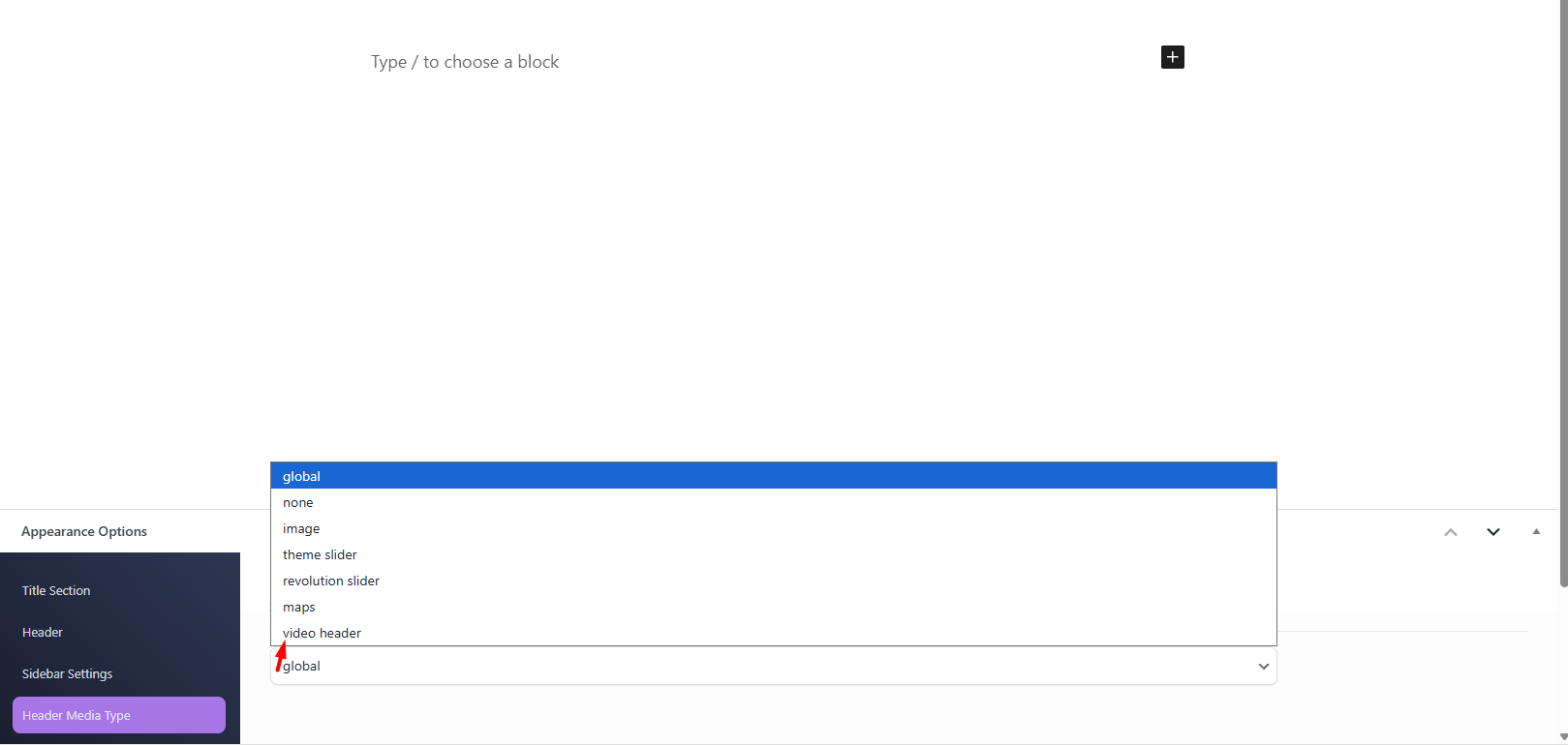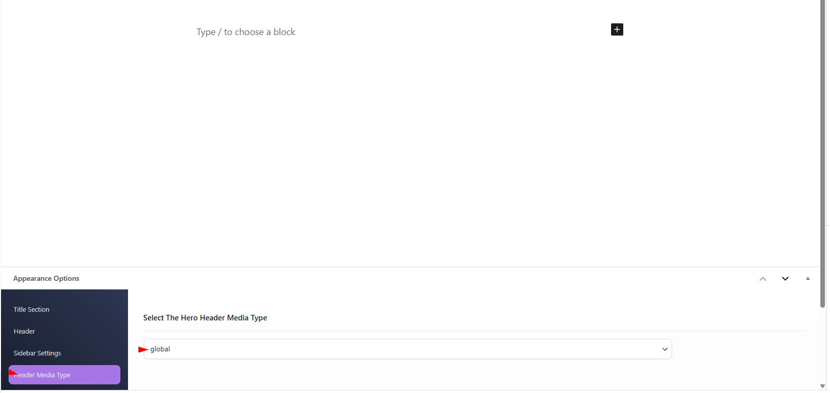 Theme options Hero Media Header will apply for Hero Media header if you have “Global” set in Appearance Options.