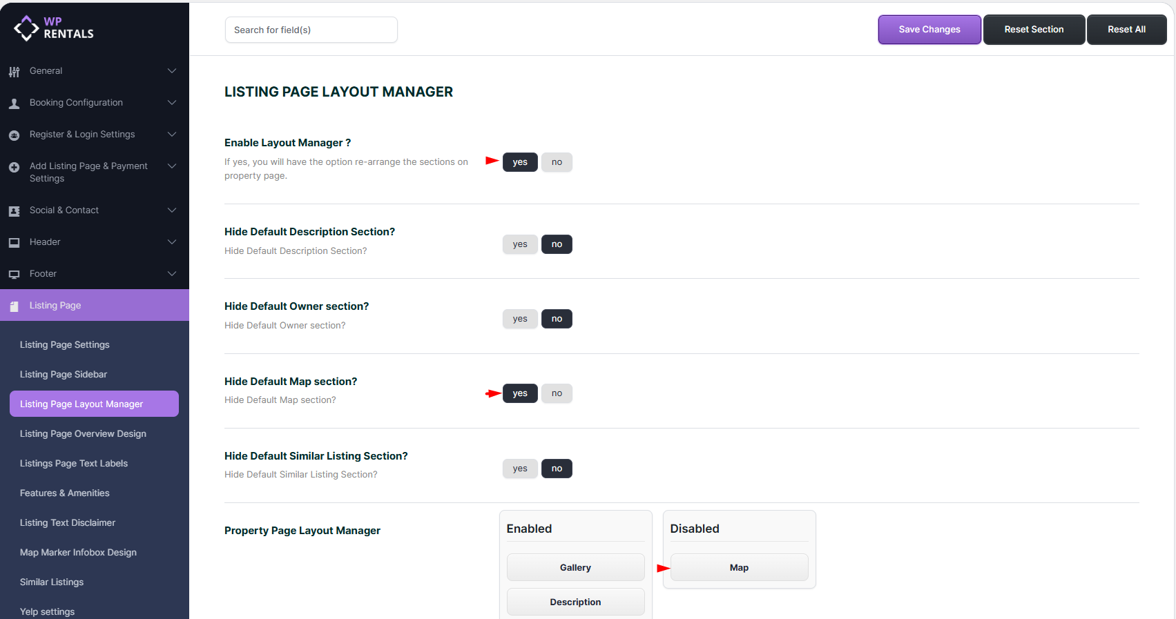 You can keep sections Enabled or Disabled by Accessing the Listing Page Layout Manager