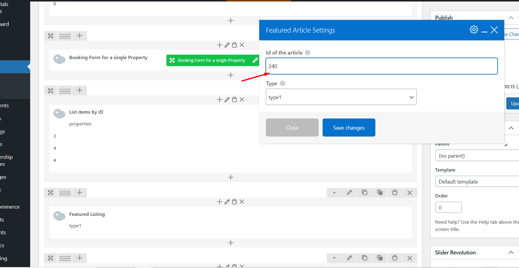 • Select the article you wish to show in the Featured Listing section from the dropdown with all the available Listings or by using the auto-complete field