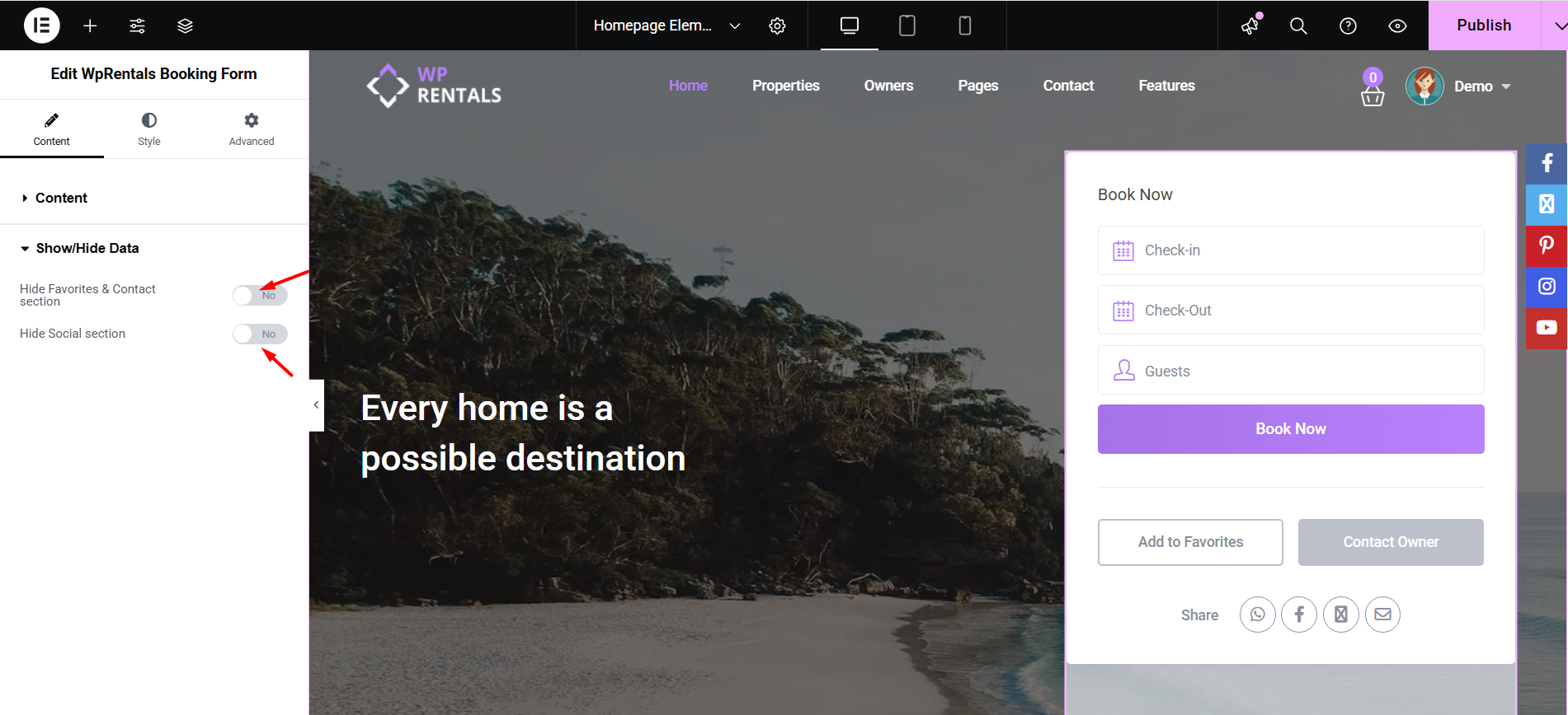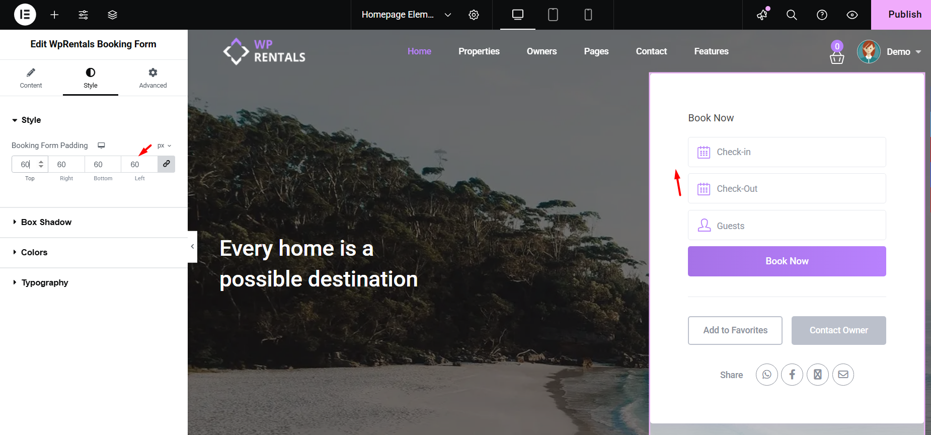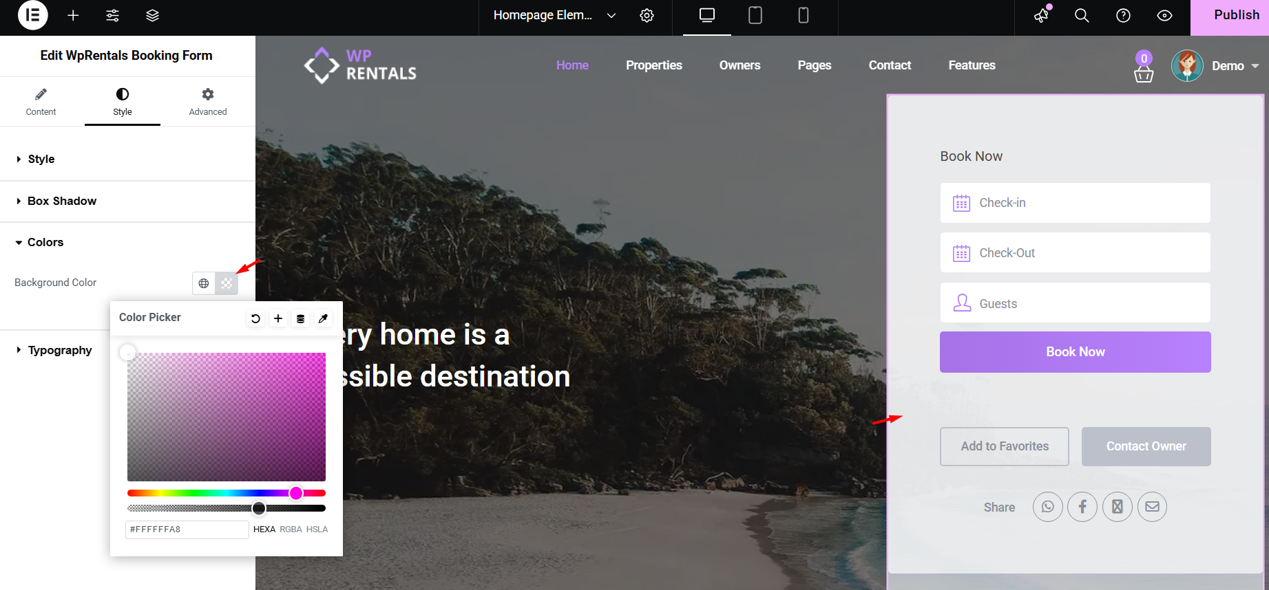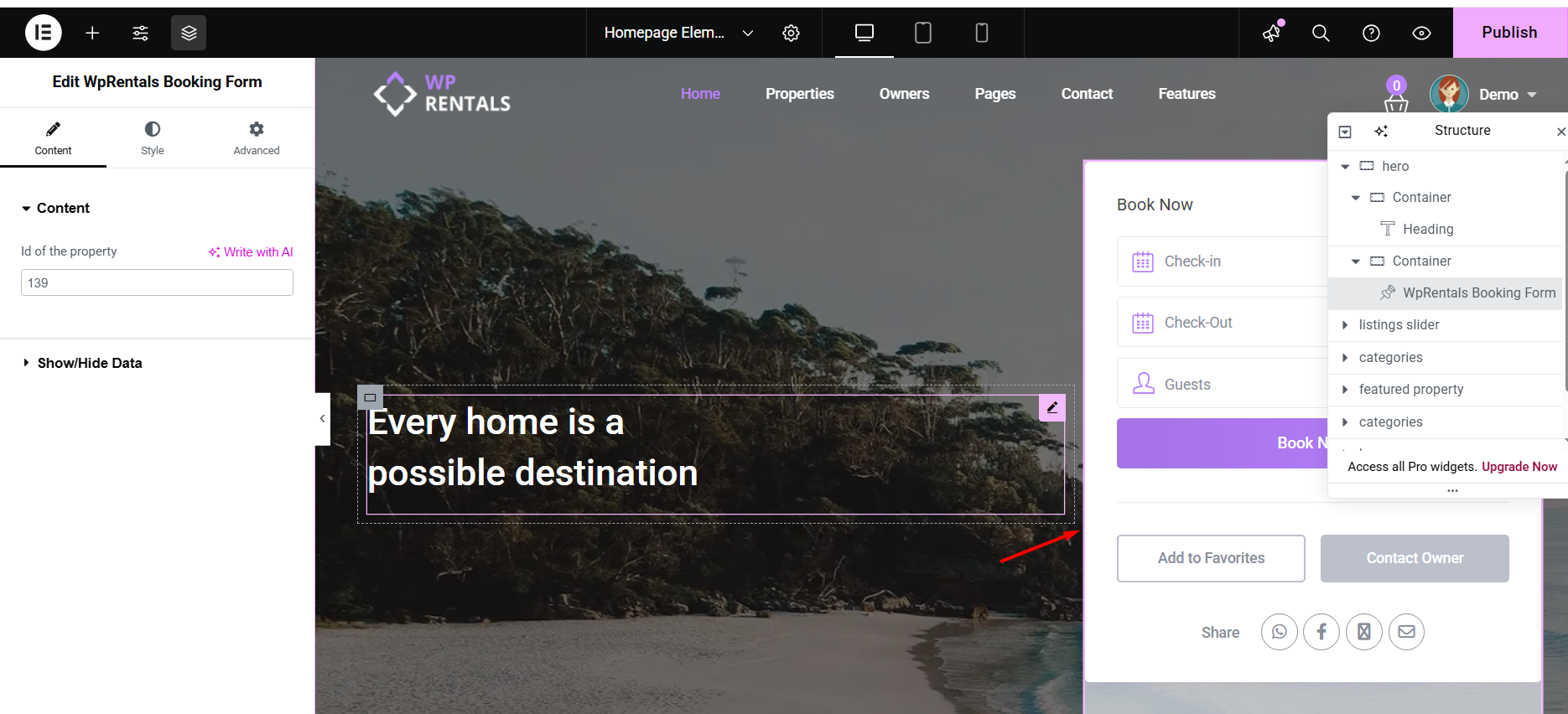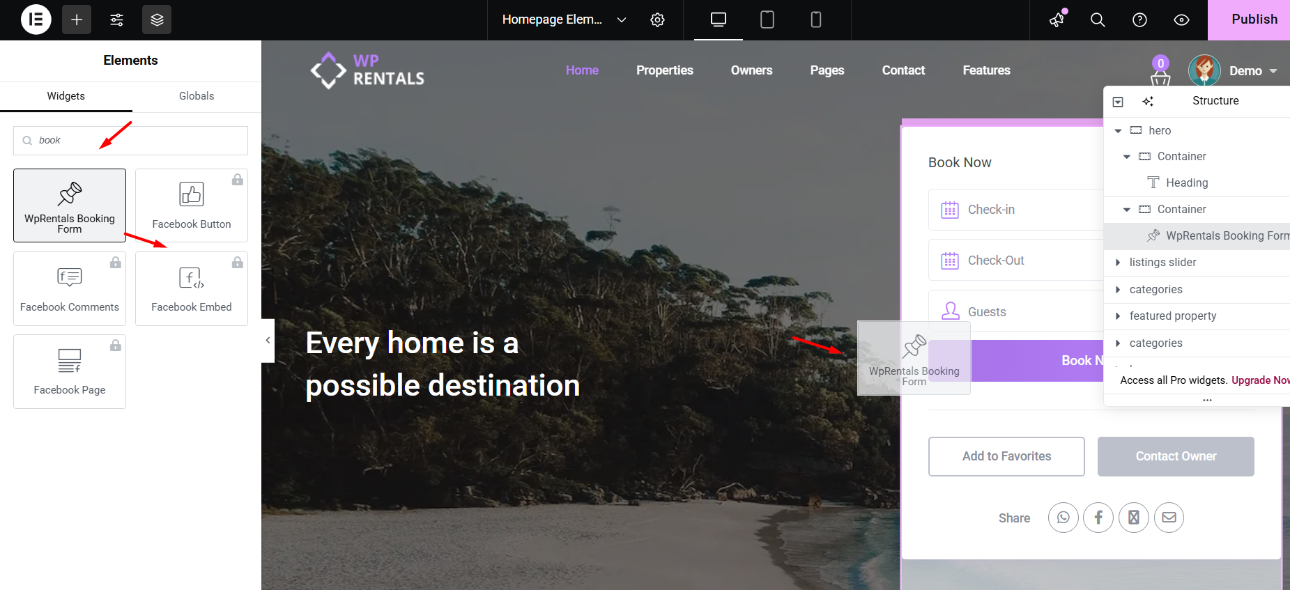 You can easily add the booking form for any property on any page using a shortcode or dedicated page builder widgets.