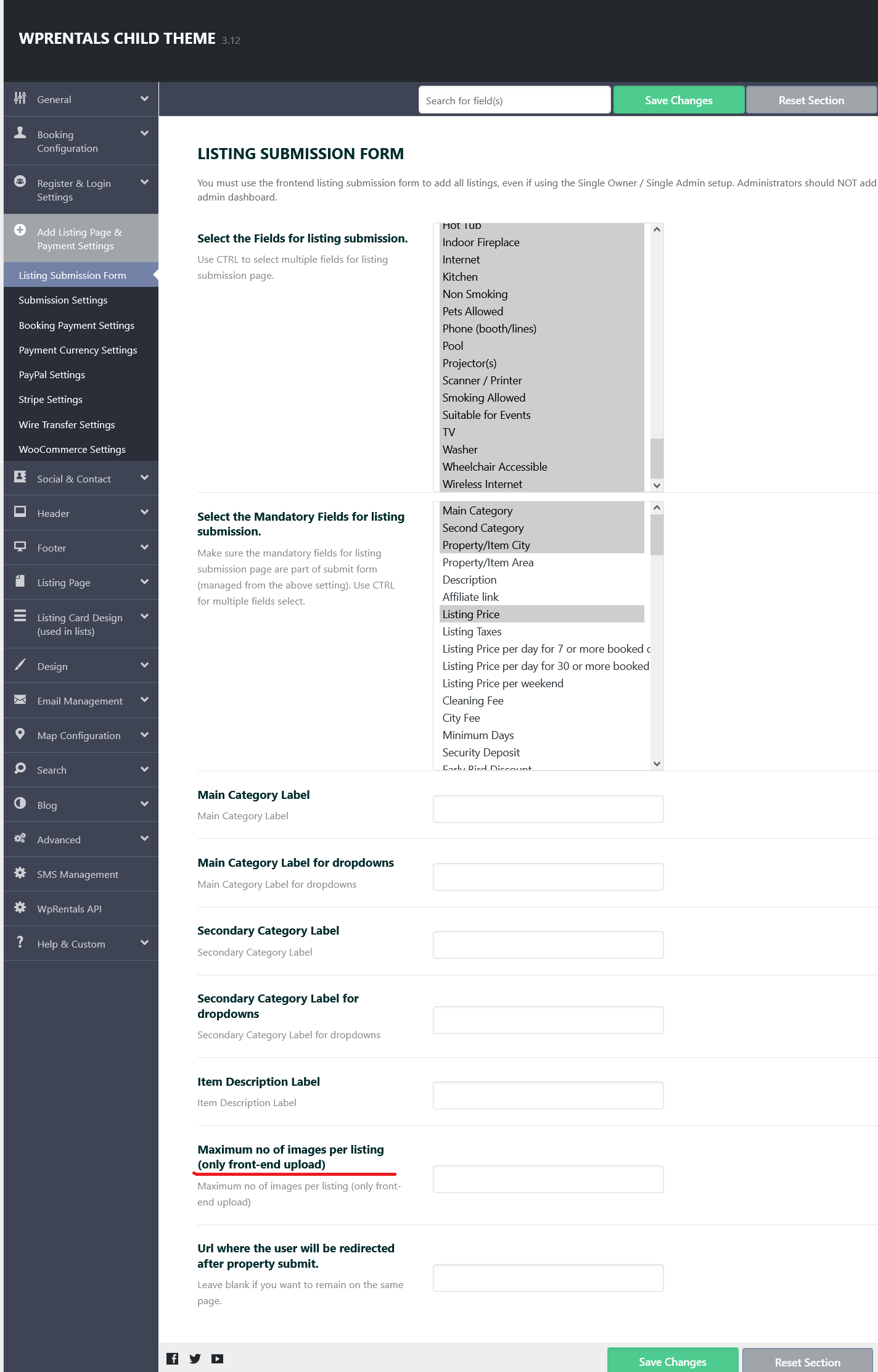 - You can configure the number of images allowed per listing in Theme Options → Payments & Submit → Listing Submit Page → Maximum no of images per listing (only front-end upload)