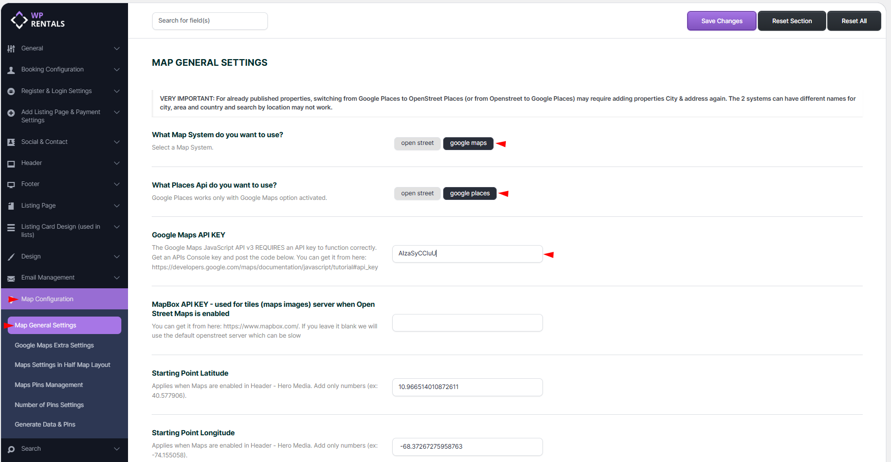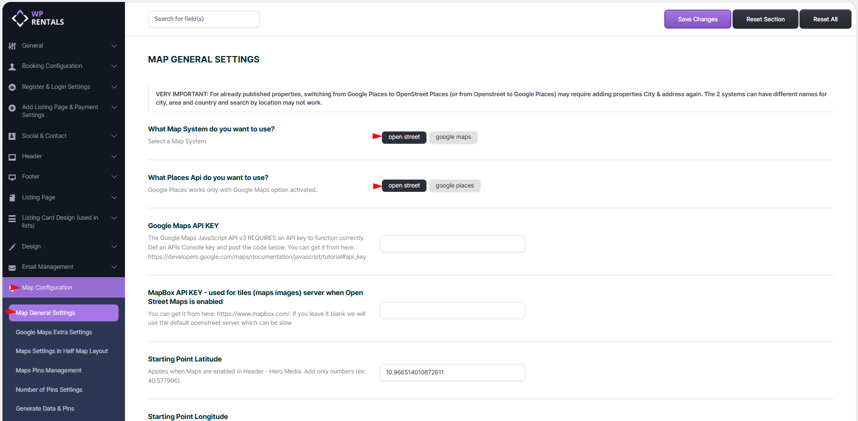 - Choose What Map System do you want to use? and Select Google Maps or OpenStreetMaps.