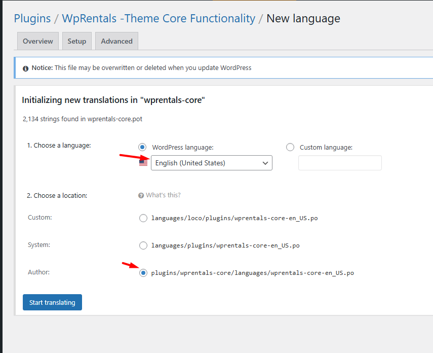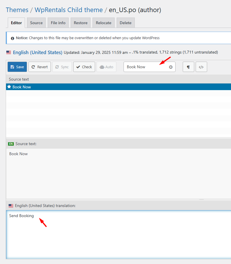 - Download and Open wprentals.po from wprentals-child-po/languages and plugins/wprentals-core/languages