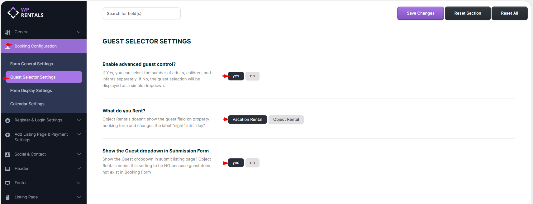 Important: If disabled, the maximum guest value will not be considered. - Enable “Vacation Rental” option.