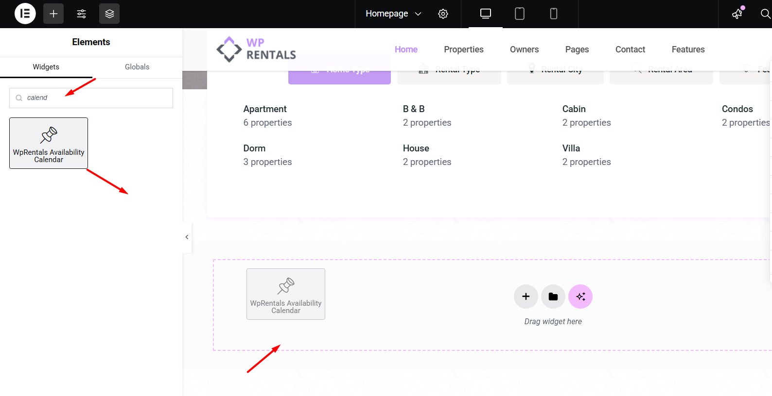 In the Elementor widgets panel, search for “Availability Calendar.”