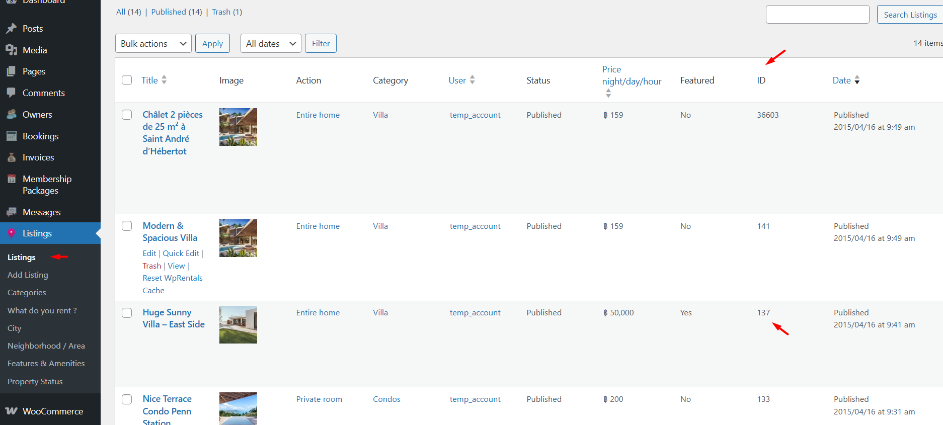 - Get the Listing ID from Wp-admin – > Listings -> ID column (copy the ID that corresponds to your listing)