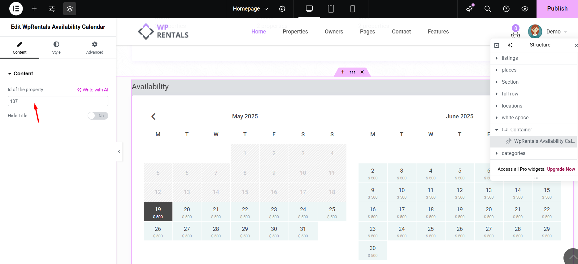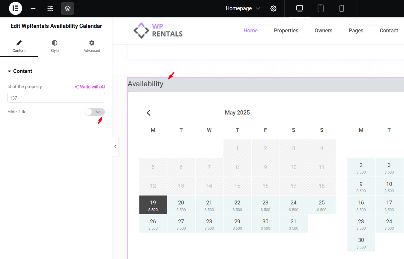 - Add the listing ID (property ID) to show the correct Availability Calendar Dates