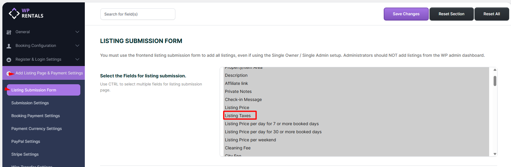 Ensure Listing Taxes Field is Visible in the Listing Submit Form