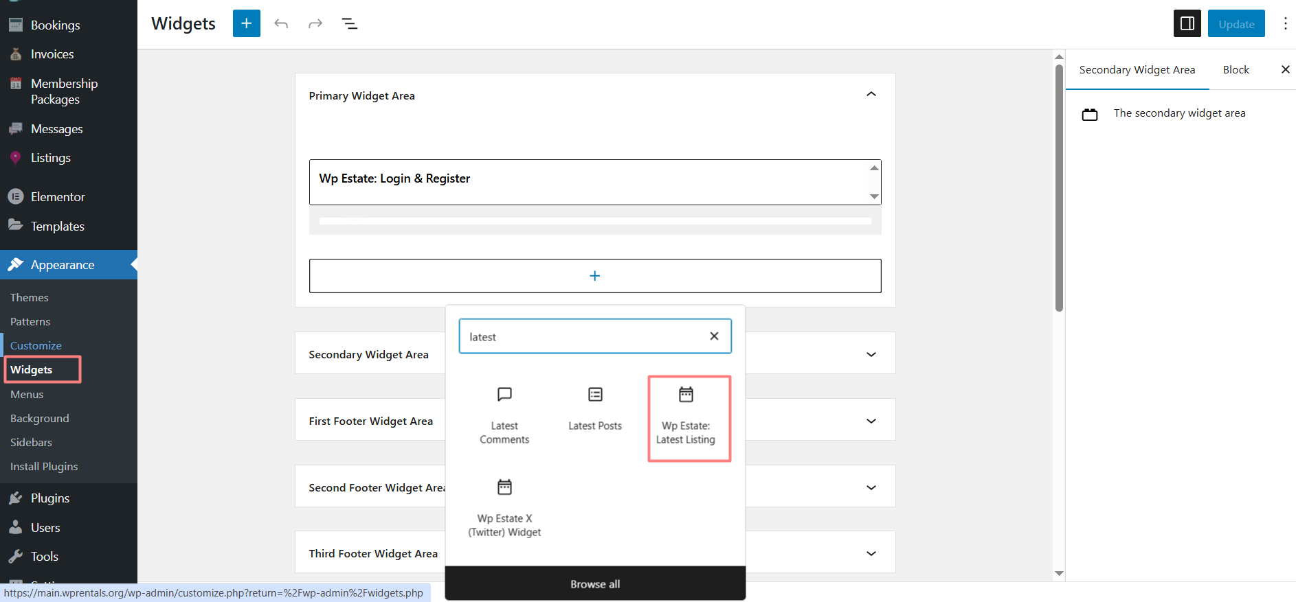 The “WpEstate – Latest Listings” widget is a sidebar widget that displays a list of the most recently published properties on your site. It is perfect for showcasing active listings in your sidebar, footer, or any widgetized area.