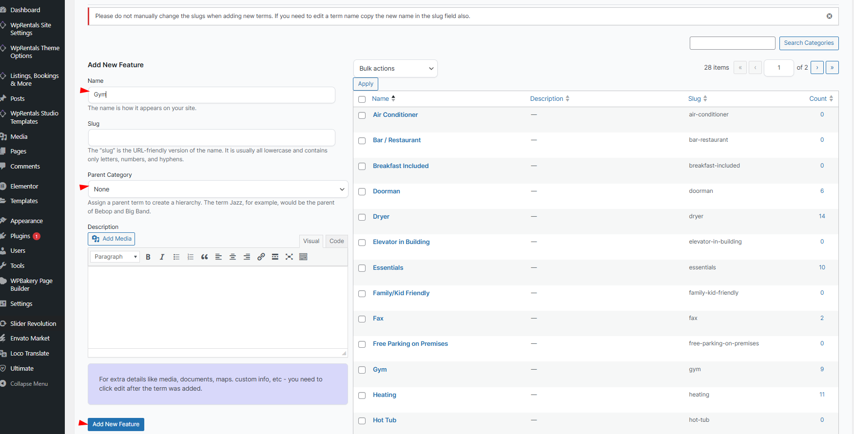- Select Parent Category (Optional). It will show the Feature and Amenity under that category