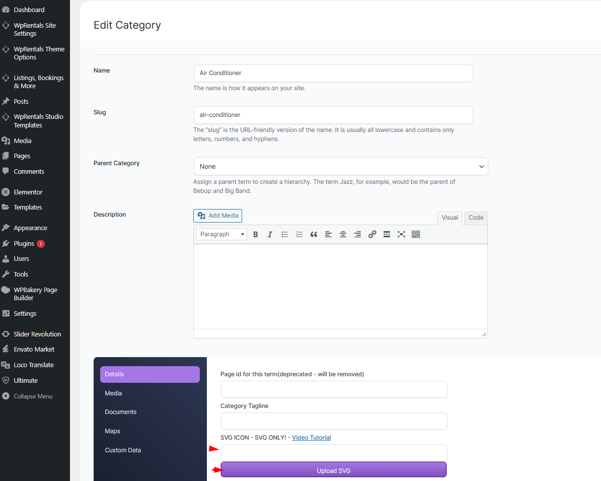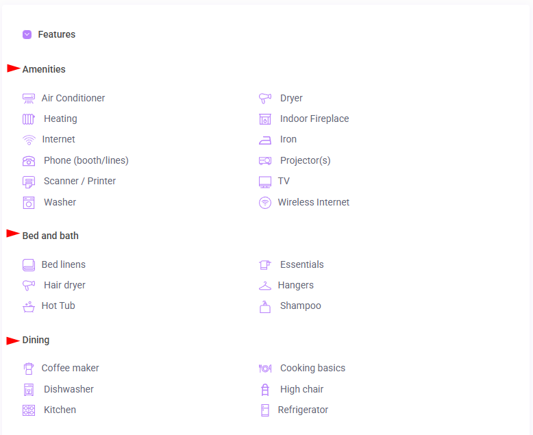 Features and Amenities support SVG Icons. To upload an SVG icon, edit the feature