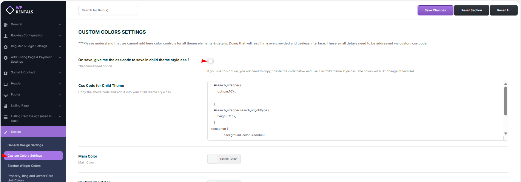 Important: Do not tick the “On save, give me the CSS code to save in child theme style.css?” option if you want the new colors to apply when saving Theme Options. This option should be ticked only if you plan to manually add the CSS code to style.css , as it will prevent Theme Options from saving styles.