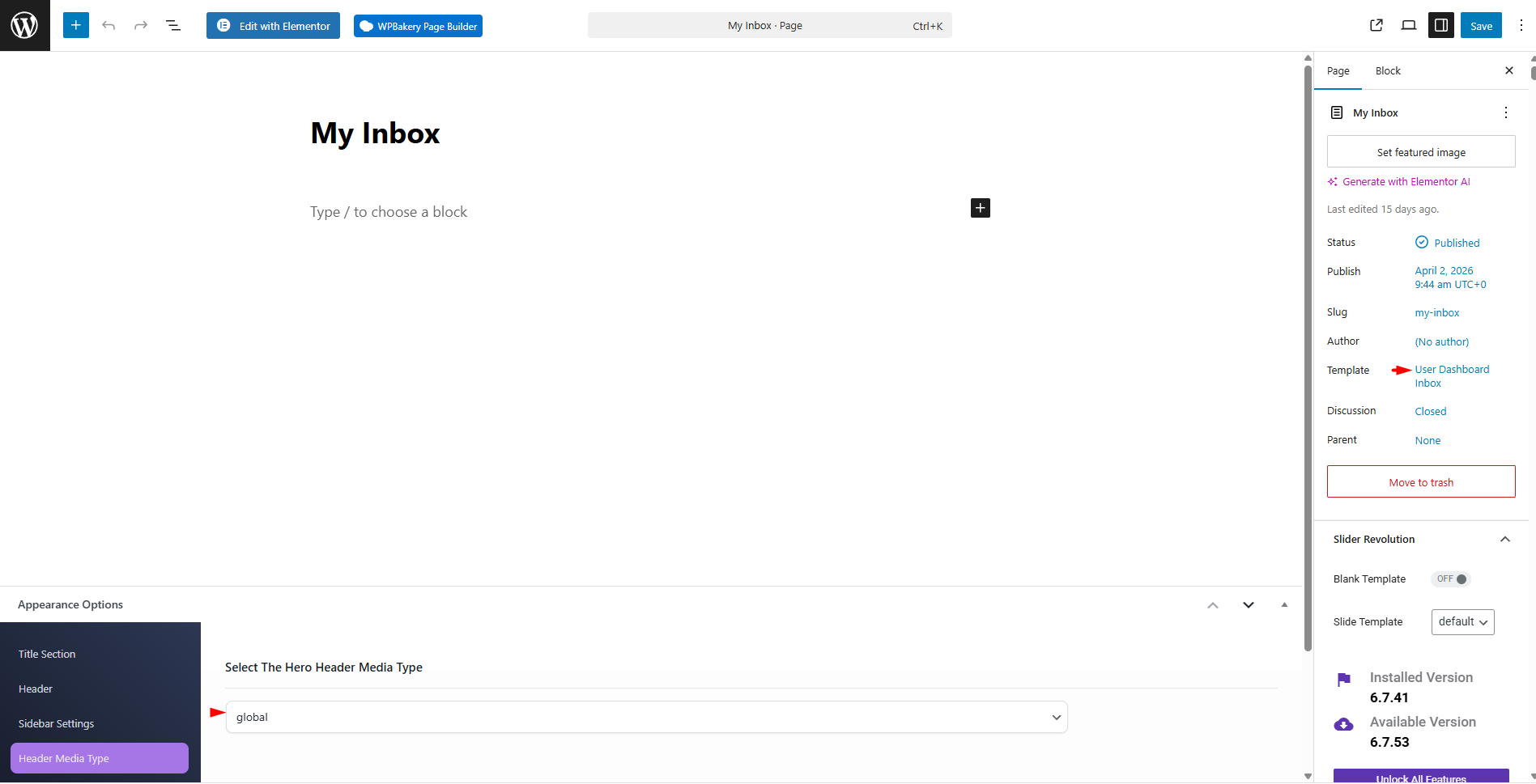 If you do NOT import demo, create this page from Wp-Admin -> Pages using the Template “User Dashboard Inbox”