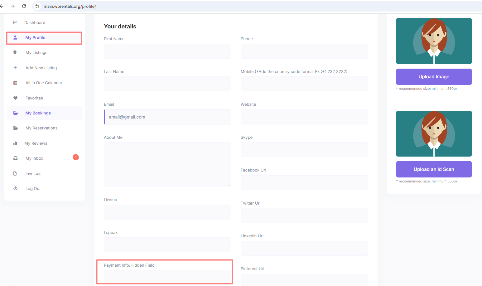 Home / Owner, WP Rentals Payment / My Profile – Payment Info – Hidden Field