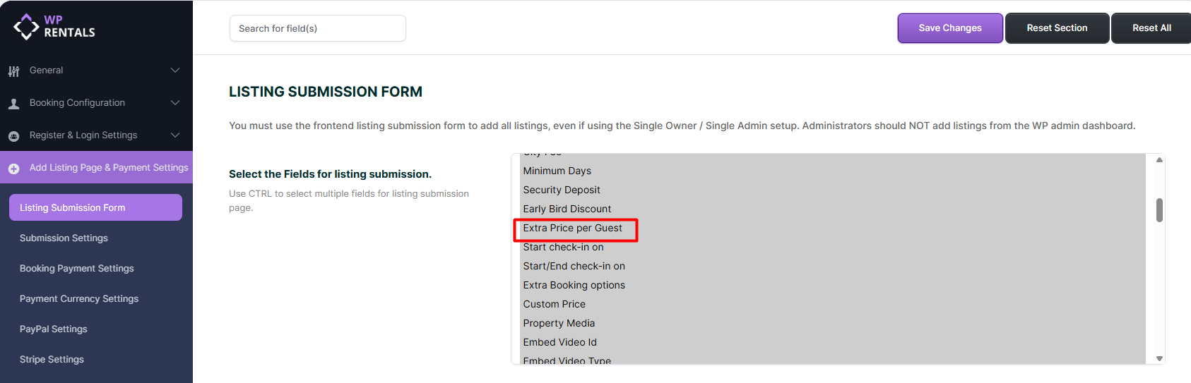 - Make sure the field “Extra price per guest” is included in the Listing Submit Page form