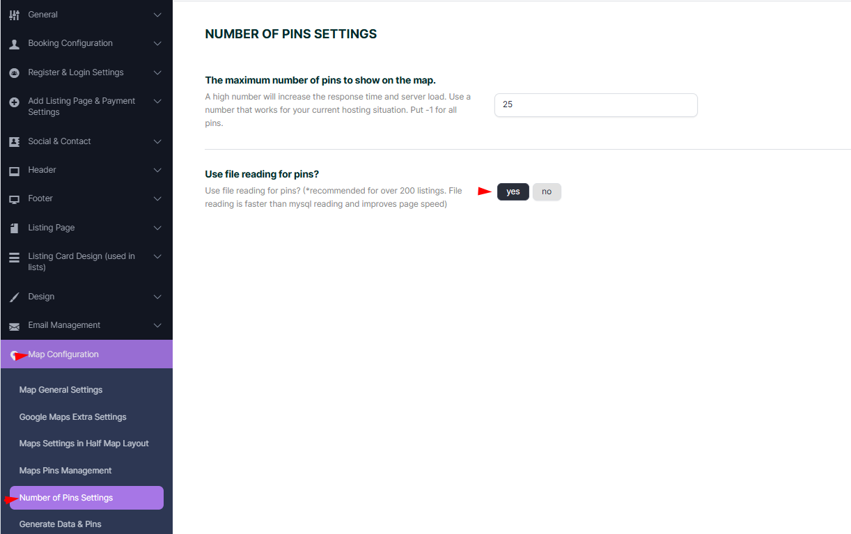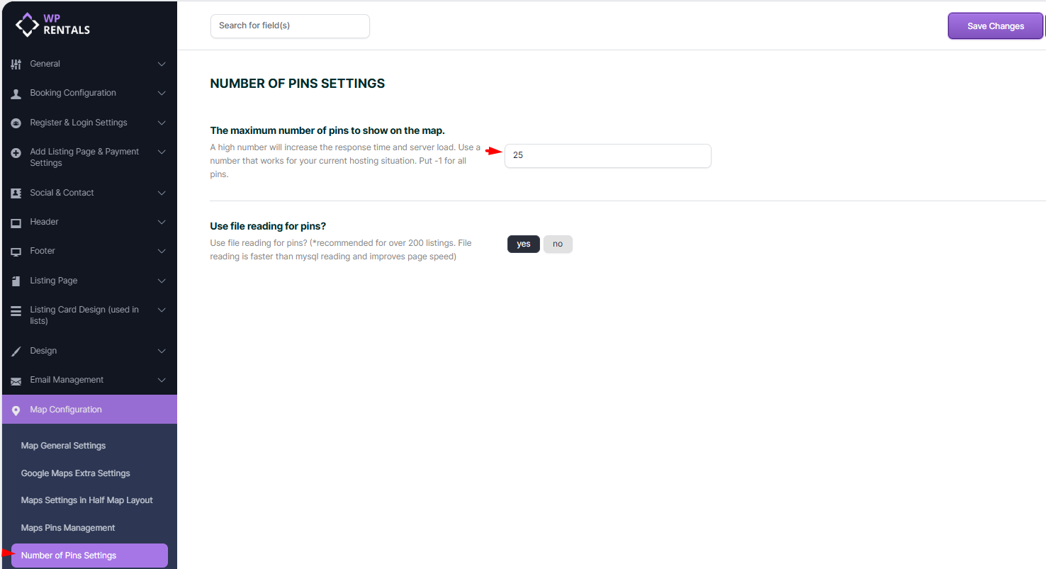 - Set a maximum number of pins on the map to match your hosting capabilities (applies to property lists and searches).