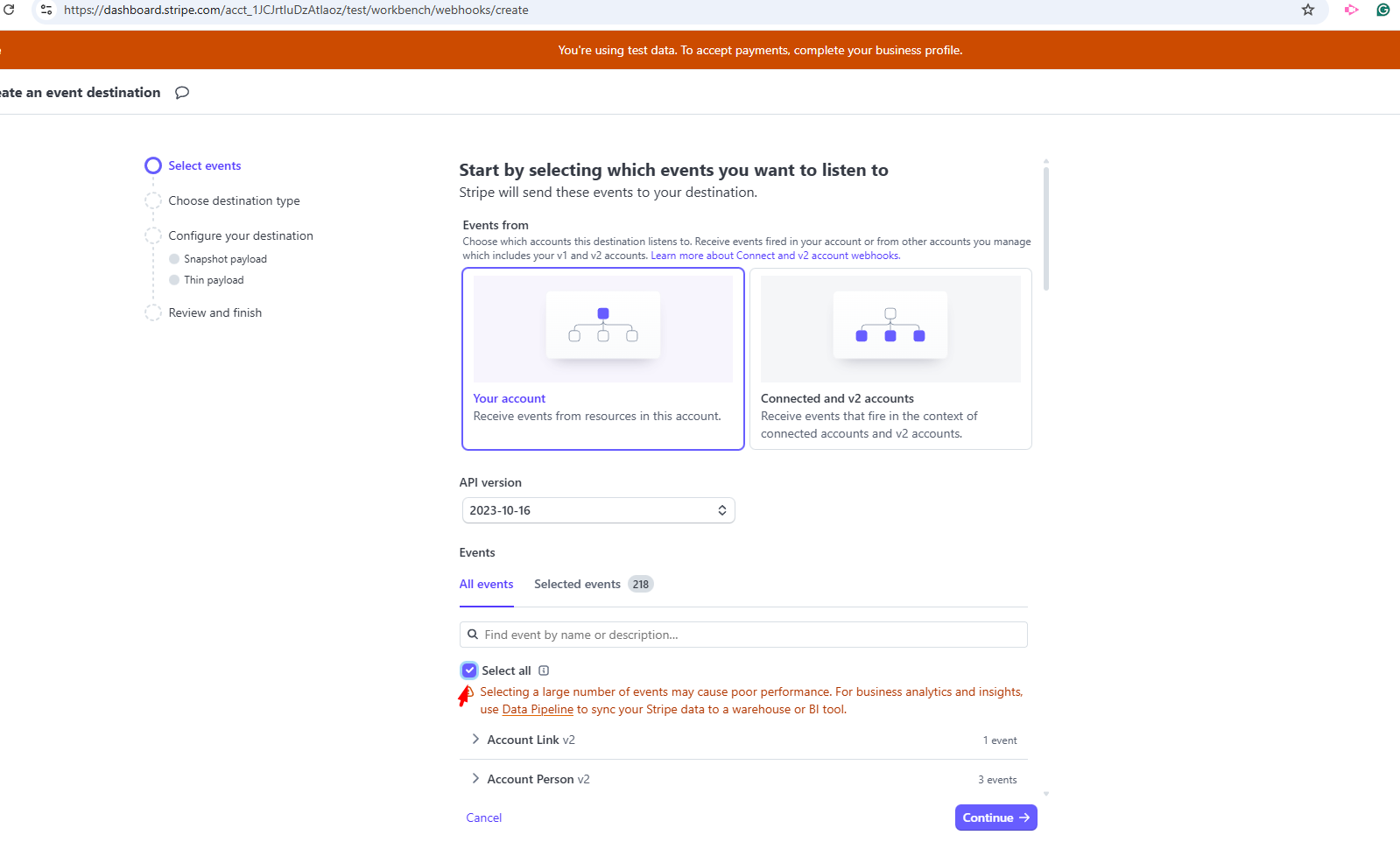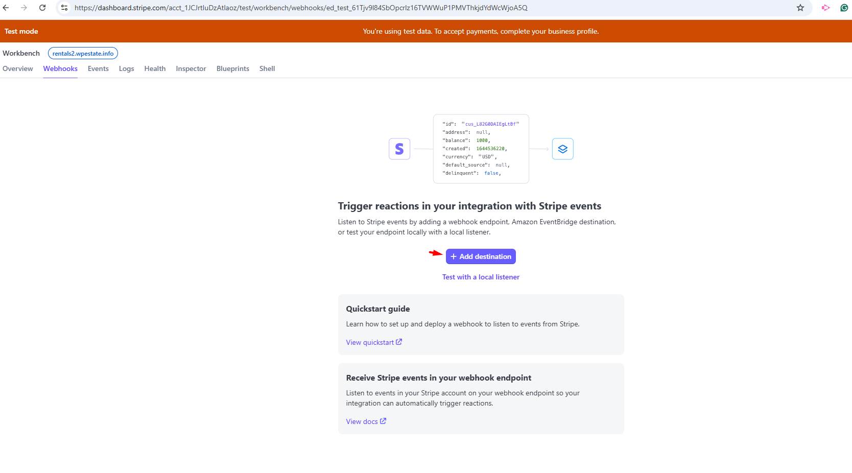 - Copy the URL of this page. You will use it as the Stripe webhook endpoint.