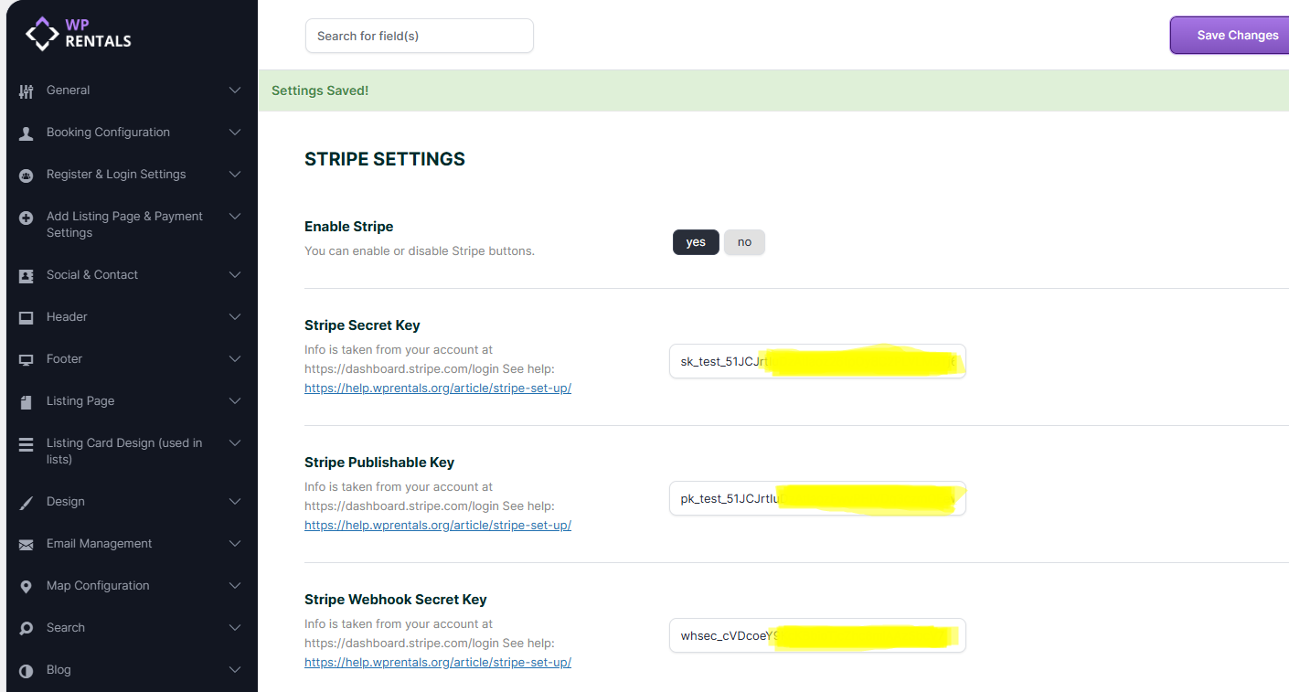 - Go to Theme Options → Add Listing Page & Payment Settings → Stripe Settings