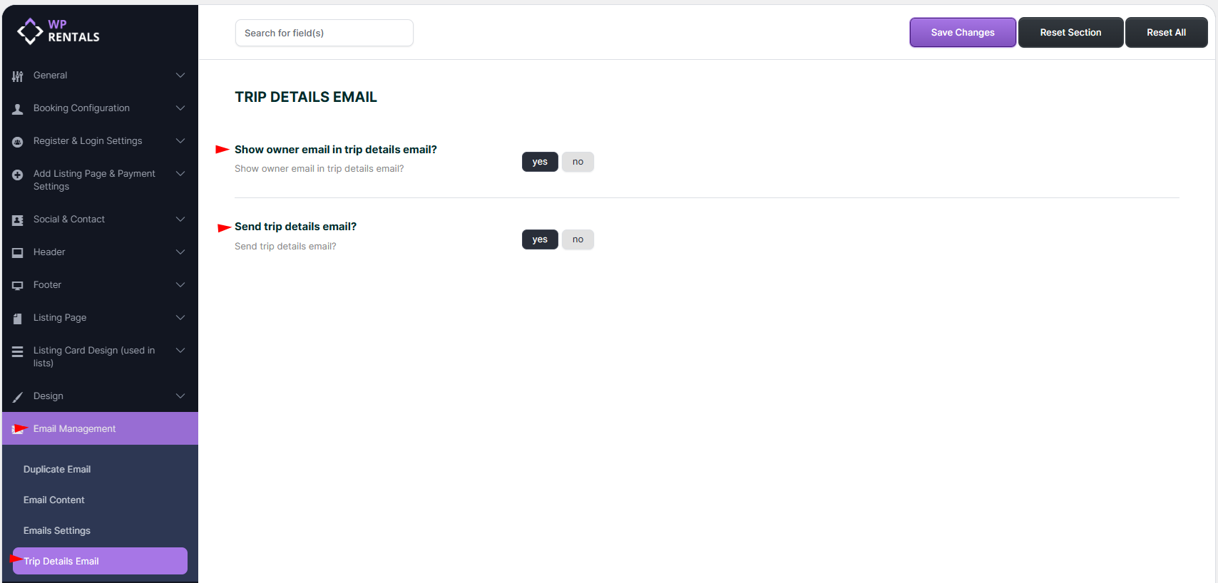 The Trip Details notification can be controlled from Theme Options > Email Management > Trip Details Email.