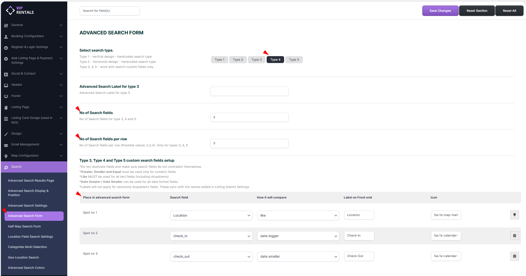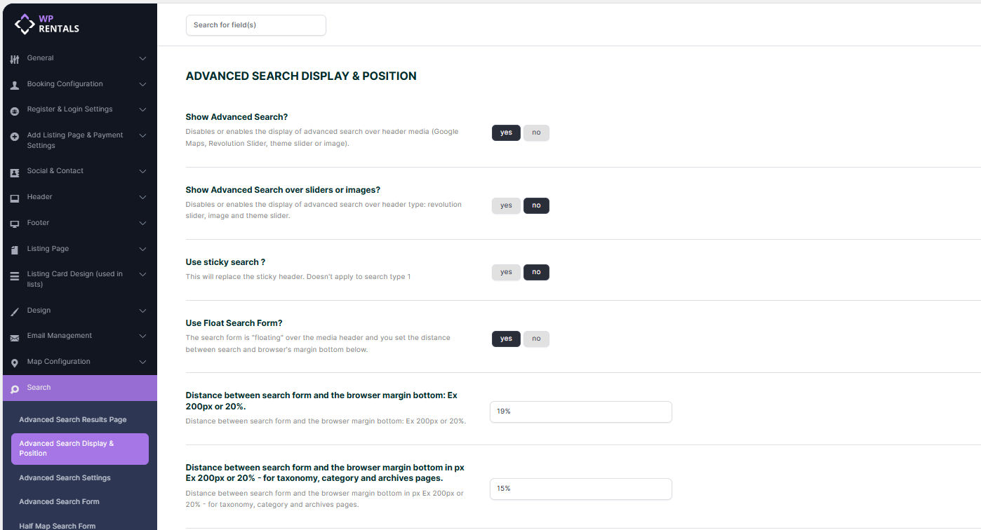 WpRentals offers multiple search form variations to fit different layouts and functionalities. This section from theme options applies to the following forms