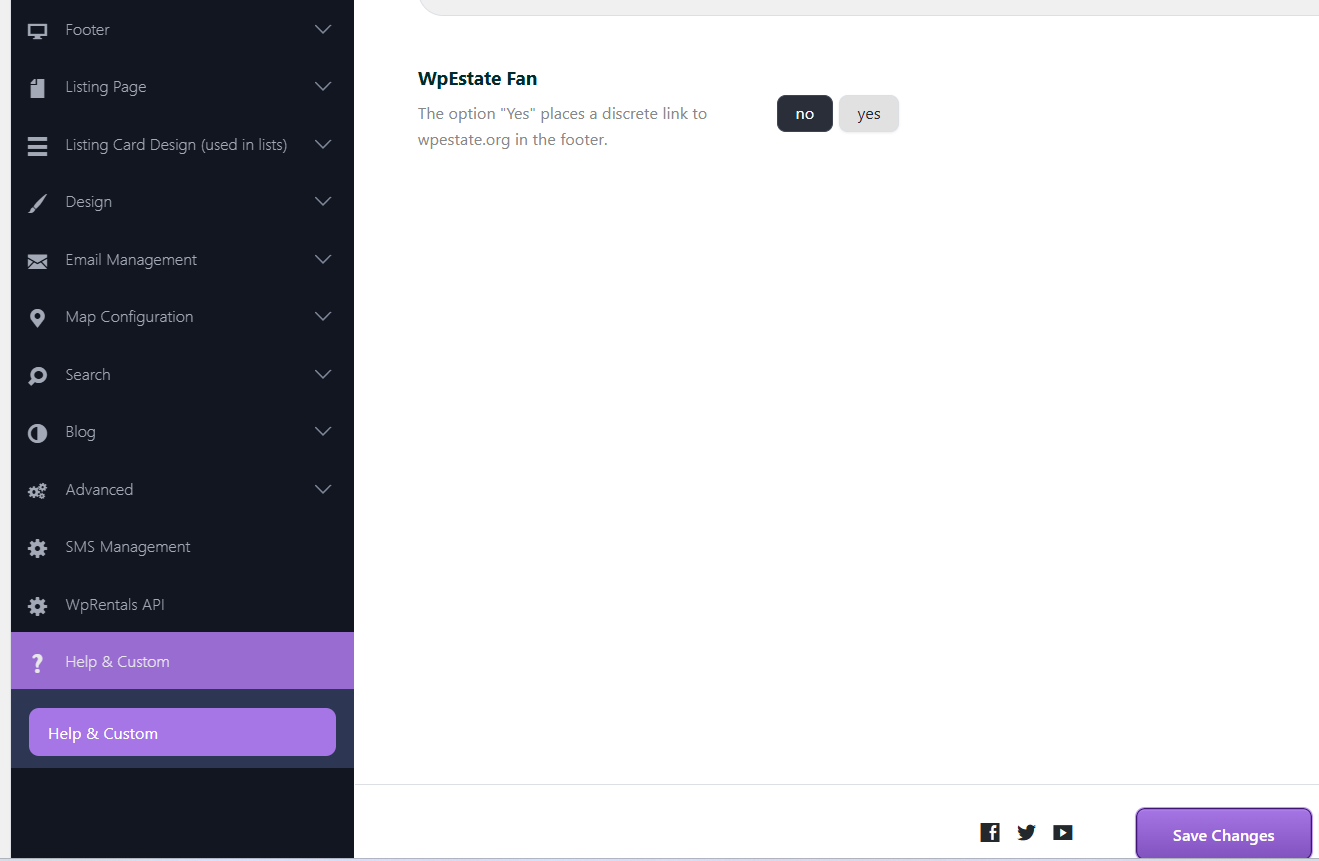 If this option is enabled, the theme may show the WPESTATE text in the footer on the front end.